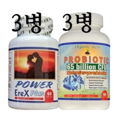 • 파워에렉스플러스 60정*3병+프로바이오틱 650억 60정*3병.(17CM평생유지,롱타임1시간 솔류션)3달분